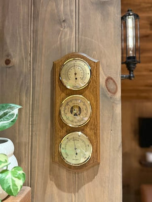 The Rustic Oak & Brass Weather Station is a 3-in-1 climate instrument that belongs on the wall of every serious weather watcher. Whether you're monitoring indoor humidity levels in your Christchurch cottage or keeping an eye on air pressure from your Byron Bay beach house, this device has your back.